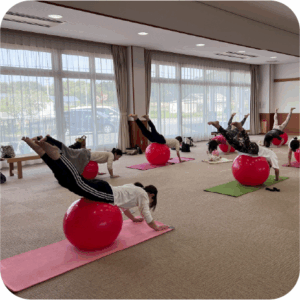 スタンダードレッスン ストレッチ体操 朝限定のレッスンメニュー。全身動かしながら伸ばし、一日の始まりを気持ちよく!そして活発に過ごせるようにしましょう! リラックスストレッチ 家事や運動、お仕事などでお疲れの方の為のゆっくりゆったりしたクラスです。のんびり気持ちよく全身を伸ばしてリラックスしてください。 ポールコンディショニング ポールを使ってバランスを取ることにより、身体(とくに体幹部)の調整し姿勢改善などにも繋がります。 ポールケア ポールを使って身体をほぐすなど、リラックスしながら疲労回復や姿勢改善にも繋がります。 ポルドブラ 「ポルドブラ」とはフランス語で「腕の運ぶ」という意味で音楽にあわせて、肩甲骨や背骨を中心に全身をバランス良く動かすことにより、柔軟性、筋力、体幹、姿勢の改善などが期待できる初心者でも取り組みやすいプログラムです。 salsation サルセーションとは、「サルサソース」のように様々な音楽ジャンルを混ぜた機能的に動くダンスフィットネスプログラムです。音楽を感じて体を使うことで初心者でも楽しみながら体幹や柔軟性、持久力などを鍛えることができます。 ペルヴィス®ワーク 一般的な筋トレ、エクササイズだけではわからない、身体の根本を変えます。骨盤を中心に全身を整え、姿勢改善、美しいボディラインを目指します。筋膜のケアもするので血流を良くし、老廃物も流し、首こり肩こりなどの様々な不調を緩和します。 BBA B…美B…BodyA…Ally(味方)いつまでも健康的で美しく!年齢を重ねても変わらぬbodyラインを目指してトレーニングひとりじゃ追い込めない習慣化するまで一緒にやりたい!そんな方にもオススメです。 初めてのバランスボール 座って弾むだけで体幹強化&体力作り。自律神経を整えることも出来、運動が苦手な方でも安心です。心も体もリフレッシュできるやさしいクラスです。 ボディコンディショニング 前半は手足のリンパをセルフケアし、血流促進させていきます。後半は骨格と筋肉のバランスを整えていくエクササイズです。 ショートトレーニング(下半身) 下半身メインの優しいトレーニングクラスです。30分間のトレーニング、その後15分ストレッチ。気軽に始めやすいトレーニングクラスです。 ショートトレーニング(上半身) 上半身メインの優しいトレーニングクラスです。30分間のトレーニング、その後15分ストレッチ。気軽に始めやすいトレーニングクラスです。 プレミアムレッスン ペルヴィスウォーキング ペルヴィス®ワークで身体を整えたら、それらを日常に活かす練習です日常の歩く!!を見直し、足裏から骨盤へ…全身のコントロールをしますきっと、歩く事が楽しくなります! ※ペルヴィス®ワークを受けていなくても参加可能です。 MoMoトレ よりストイックにトレーニングに慣れた方、フォームをしっかり意識したい方向けのレッスンです。 moっと×momo (桃) の意味“moっと”可愛く “moっと”理想のカラダ(お尻)へmomo(桃)=丸み・可愛さ・女性らしさ努力の“もっと”と、桃の“momo”が自然に溶けて、可愛いのにストイックな世界観になる。 ボディセラピー ボディオイルを使用し、リンパ・血流を良好に。そして、より身体がほぐれます。その後、呼吸法を行い、心身のバランス、筋肉のバランスを整えていくことにより体の機能改善にも役立ちます。 少人数制トレーニング 女関係なく強度の高いトレーニングクラスです。・頑張りたいけど一人では頑張れない。・どういうことをすればいいのか分からない。・普段のトレーニングがマンネリ化している、飽きてきている方。など、そういった方にオススメのクラスです。 漢の部活動 男性限定の高強度トレーニングプログラムです。学生時代の部活の記憶を懐かしみ思い出しながら、あの頃の気持ちを!身体をもう一度!! 脂肪燃焼バランスボール 音楽に合わせて全身をしっかり動かし脂肪燃焼代謝アップ&シェイプアップを手軽に◎しんどいトレーニングなどが苦手だけど、身体をスッキリしたい方におすすめなクラスです。 入会金 ¥3,300 / 登録事務手数料 ¥2,200 スタンダードレッスン12レッスン ¥26,500 有効期限2ヶ月8レッスン ¥16,500 有効期限2ヶ月4レッスン ¥8,500 有効期限1ヶ月2レッスン ¥5,500 有効期限1ヶ月1レッスン ¥2,750 有効期限1ヶ月ビジター ¥3,750 プレミアムレッスン9回 ¥27,500 有効期限3ヶ月6回 ¥16,500 有効期限2ヶ月3回 ¥11,000 有効期限1ヶ月2回 ¥6,600 有効期限1ヶ月1回 ¥3,300 有効期限1ヶ月ビジター ¥4,300